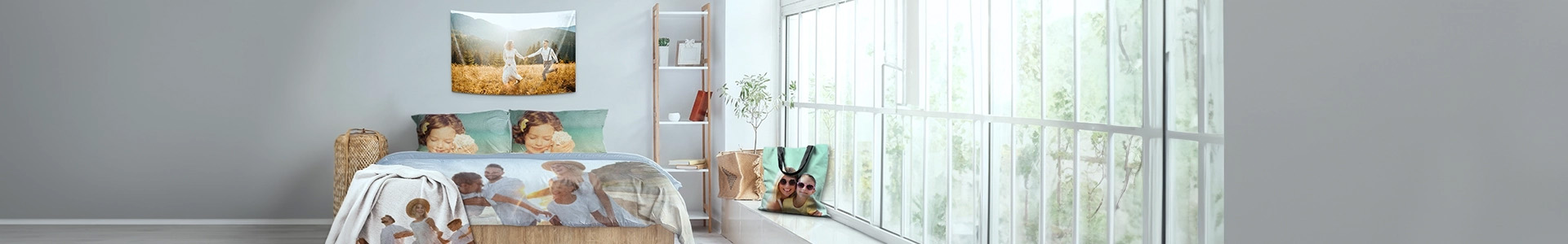 Verleihe deinem Wohn- oder Schlafzimmer eine persönliche Note mit individuellen Kissen, bedruckt mit deinen Lieblingsfotos. Mach es dir bequem – mit einer kuscheligen Fotodecke oder einem weichen Kissen, bedruckt mit deinen schönsten Erinnerungen. Stilvoll, einzigartig und perfekt für dein Zuhause!