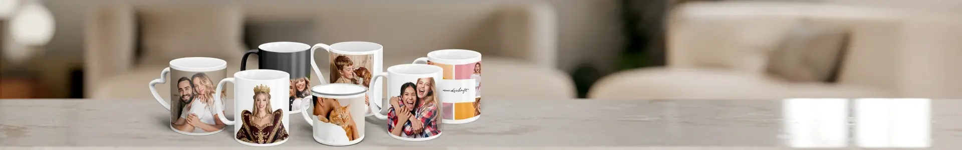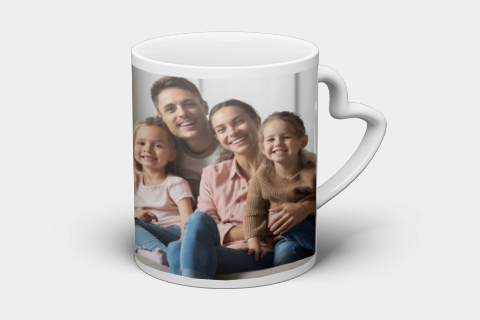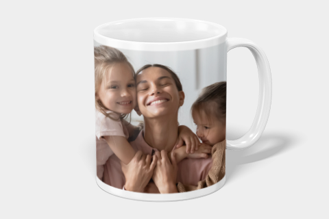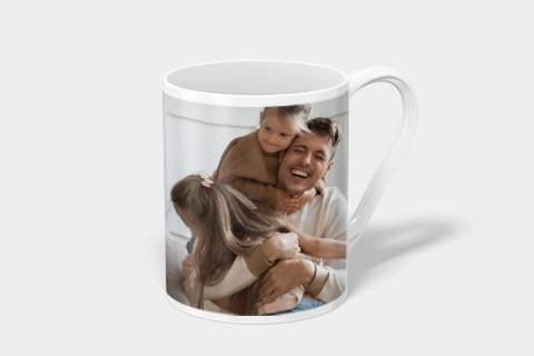 Eine weiße Keramiktasse in klassischer Form mit deinem Fotomotiv, welches einseitig oder auch rundum als Panorama gedruckt werden kann. Immer ideal – ob für Zuhause oder für‘s Büro.