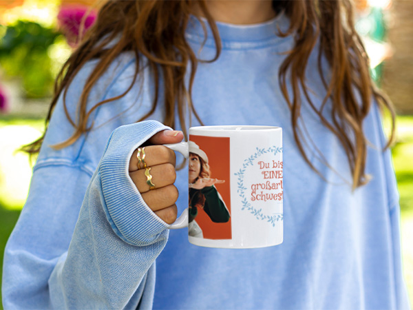 Ob Lieblingsfotos, unvergessliche Urlaubsmomente oder kleine Alltagsgeschichten – mit unserer Collagenfunktion gestaltest du deine Tasse ganz individuell. Mehrere Bilder lassen sich mühelos kombinieren und kreativ anordnen. So entsteht ein persönliches Design, das dich jeden Morgen beim Kaffee oder Tee zum Lächeln bringt.