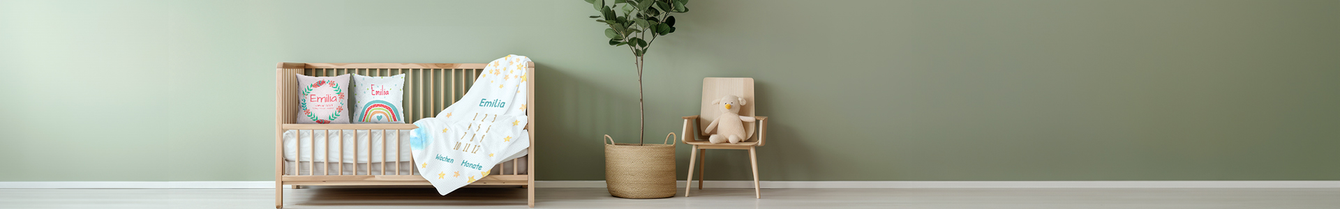 Die Meilensteindecke und das Geburtskissen sind mehr als nur einfache Kinderartikel; sie sind personalisierte Erinnerungsstücke, die den Anfang des Lebensweges eines Kindes festhalten. Die Meilensteindecke dient als kreative Leinwand, um das Wachstum und die monatlichen Fortschritte eines Neugeborenen fotografisch festzuhalten. Durch das Hinzufügen des Namens des Babys und mit Platz für monatliche Schnappschüsse bietet sie eine visuell ansprechende Chronik der Entwicklung im ersten Lebensjahr. Das Geburtskissen, personalisiert mit den Geburtsdaten, wird zu einem bleibenden Andenken an den Tag, an dem das Kind das Licht der Welt erblickt hat. Es bietet nicht nur Komfort, sondern auch eine ständige Erinnerung an die Einzigartigkeit dieses besonderen Tages. Beide Produkte fügen sich nahtlos in das Kinderzimmer ein und sind Zeugen der Liebe und Fürsorge, die das Kind von seinen ersten Momenten an umgeben.