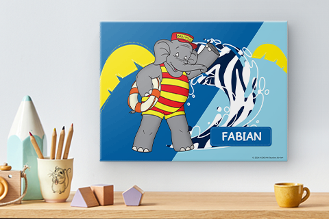 Mit unseren Benjamin Blümchen Leinwänden bringst DU den liebsten Elefanten Deiner Kinder direkt in deren Zimmer und sorgst gleichzeitig für einen fröhlichen Blickfang an den Wänden. Und das Beste: Mit ihrem Namen auf der Leinwand werden Deine Kids Teil von Benjamin Blümchens wunderbarer Welt! Der hochauflösende Druck, die strahlenden Farben und das gestochen scharfe Motiv zaubern ein Lächeln in jedes Kinderzimmer. Natürlich sind die Leinwandprodukte nachhaltig produziert. Das Holz stammt aus der FSC-zertifizierten Forstwirtschaft und alle Tinten sind frei von Lösemitteln. Deine Benjamin Blümchen Leinwand ist damit geruchlos und sowohl für Deine Kinder als auch für Allergiker geeignet.