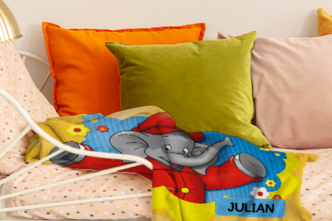 Dank der Benjamin Blümchen Premium-Kissen schläft es sich gleich doppelt so gut, und Deine Kleinen träumen von spannenden Abenteuern mit ihrem liebsten Elefantenfreund. Aber auch zum Kuscheln und Liebhaben sind die flauschigen, in Deutschland handgenähten Kissen bestens geeignet. Erhältlich sind sie in der Größe 40x40 cm. Gedruckt ohne chemische Zusatzstoffe, verfügen die Kissen über einen hochwertigen Reißverschluss ohne verschluckbare Kleinteile. Die Hülle besteht auf beiden Seiten aus weichem, hautfreundlichem Plüschstoff. Das Inlet ist gefüllt mit Polyester. Der Bezug ist bei 30° in der Waschmaschine waschbar, sodass Deine Kids immer ein sauberes Kissen griffbereit haben.