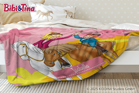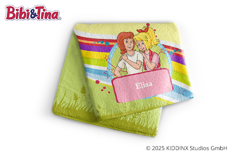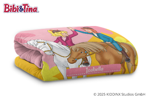 Die Bibi & Tina Kuscheldecke ist ein traumhafter Begleiter für junge Fans der beliebten Kinderserie. Hergestellt aus kuscheligem Plüschstoff, bietet sie Wärme und Geborgenheit beim Lesen, Fernsehen oder Entspannen. Mit den Maßen 100x70 cm ist sie groß genug, um sich gemütlich einzukuscheln, und zugleich handlich genug für Kinder. Die Rückseite der Decke ist in einem ruhigen Grauton gehalten, was einen schönen Kontrast zum lebendigen Vorderseitendesign bildet und die Decke vielseitig einsetzbar macht. Die Pflegeleichtigkeit wird durch die Waschmaschinenfestigkeit bei 30°C unterstrichen, wodurch sie ideal für den täglichen Gebrauch ist. Mit ihrem fröhlichen Bibi & Tina-Design wird die Decke schnell zum Lieblingsstück in jedem Kinderzimmer.