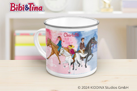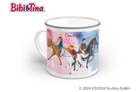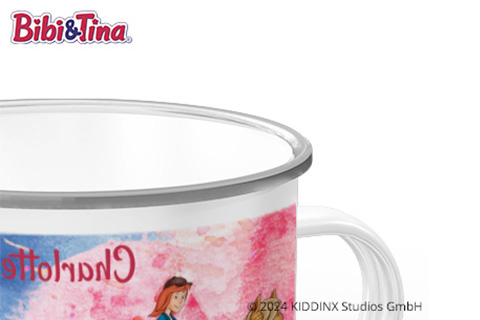 Die Bibi & Tina Emaille-Tasse ist ein charmantes und praktisches Produkt, perfekt zugeschnitten auf die Bedürfnisse kleinerer Kinder. Hergestellt aus robustem, emailliertem Material, ist sie besonders widerstandsfähig gegen Stöße und Kratzer, was sie ideal für den täglichen Gebrauch macht. Ein besonderes Highlight dieser Tasse ist die Möglichkeit zur Personalisierung: Der Name des Kindes kann auf die Tasse gedruckt werden, wodurch sie zu einem ganz persönlichen und geschätzten Besitz wird. Das liebevoll gestaltete Design mit Bibi & Tina-Motiven spricht Kinder direkt an und macht das Trinkerlebnis zu einem kleinen Abenteuer. Ihre Größe und Form sind speziell auf kleine Hände abgestimmt, was die Tasse zu einer sicheren und kindgerechten Wahl macht.