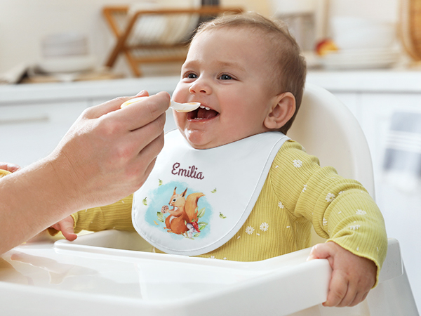 Wenn der erste Brei seinen Weg neben den Mund findet, kommt unser personalisiertes Babylätzchen ins Spiel. Es fängt jeden Klecks auf und bewahrt die Kleidung deines Babys vor Flecken. Wähle aus einer Vielzahl von entzückenden Designs das perfekte Lätzchen aus, das nicht nur praktisch, sondern auch ein stilvolles Accessoire ist.